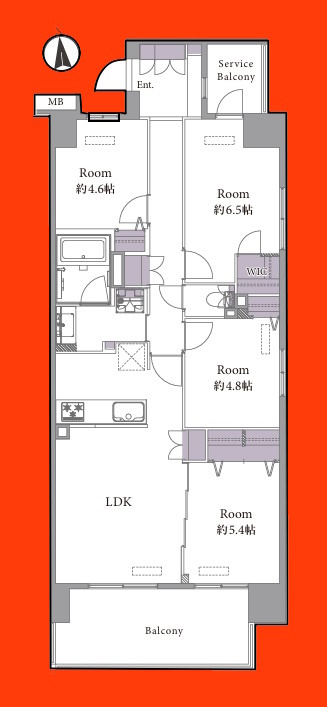 | 専有面積 | 84m² | バルコニー面積 | 10.8m²/南側 |