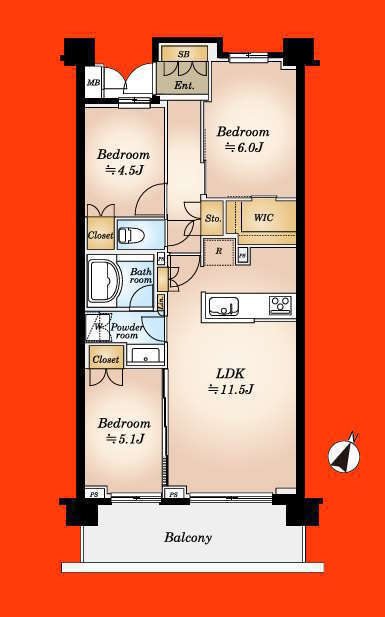 | 専有面積 | 68.69m² | バルコニー面積 | 10.8m²/南東側 |