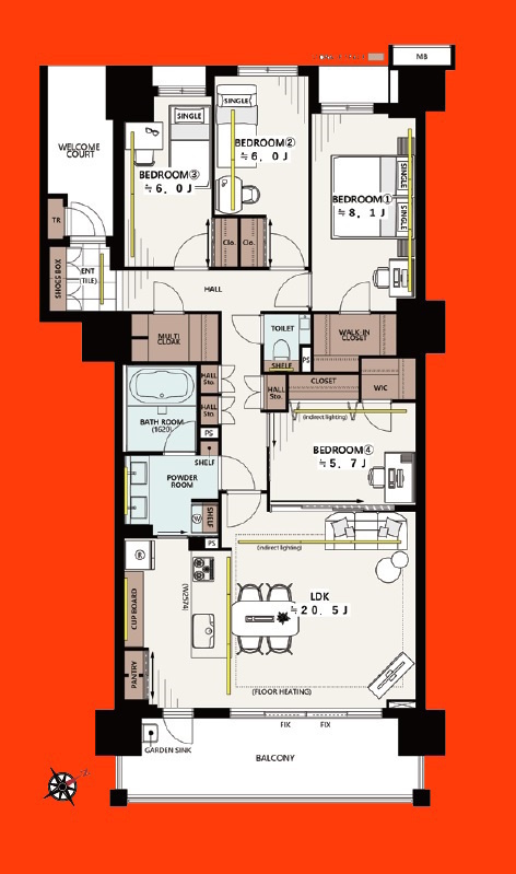 | 専有面積 | 112.8m² | バルコニー面積 | 14.6m²/南東側 |